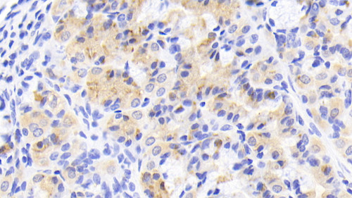 DAB staining on IHC-P; Samples: Human Kidney Tissue; Primary Ab: 20μg/ml Rabbit Anti-Human AGMAT Antibody Second Ab: 2µg/mL HRP-Linked Caprine Anti-Rabbit IgG Polyclonal Antibody