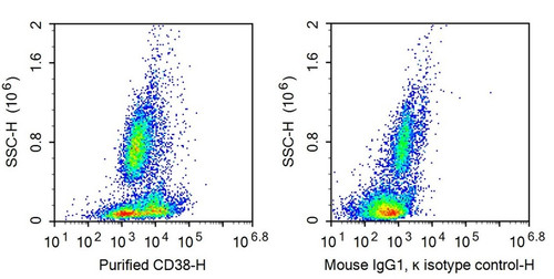 The Anti-Cluster Of Differentiation 38 (CD38) Monoclonal Antibody (Species: Human) has been validated for the following applications: FCM. Host: Rabbit. Species: Human (Homo sapiens). Applications: FCM. Accession Number: P28907. Gene ID: 952. Target Synonyms: cADPRH; ADPRC 1; c-ADPRH; T10; p45; 2'-phospho-ADP-ribosyl cyclase/2'-phospho-cyclic-ADP-ribose transferase; ADP-ribosyl cyclase 1 Restrictions: For Research Use Only. Not for use in diagnostic procedures.
