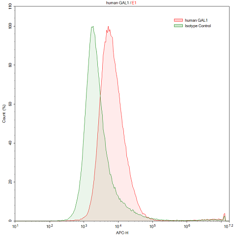 The Anti-Galectin 1 (GAL1) Polyclonal Antibody (Species: Human) has been validated for the following applications: Flow cytometry. Host: Rabbit. Species: Human (Homo sapiens). Immunogen: Met1~Asp135. Applications: Flow cytometry. Accession Number: P09382. Gene ID: 3956. Target Synonyms: LGALS1; GBP; HLBP14; Galaptin; Lectin,Galactoside-Binding Soluble 1; 14 kDa laminin-binding protein; Lactose-binding lectin 1; Putative MAPK-activating protein PM12; S-Lac lectin Restrictions: For Research Use Only. Not for use in diagnostic procedures.