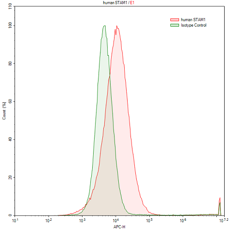 The Anti-Signal Transducing Adaptor Molecule 1 (STAM1) Polyclonal Antibody (Species: Human) has been validated for the following applications: Flow cytometry. Host: Rabbit. Species: Human (Homo sapiens). Immunogen: Thr196~Val465. Applications: Flow cytometry. Accession Number: Q92783. Gene ID: 8027. Target Synonyms: SH3 Domain And ITAM Motif Restrictions: For Research Use Only. Not for use in diagnostic procedures.
