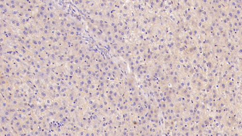 DAB staining on IHC-P; Sample: Porcine Liver Tissue; Primary Ab: 40ug/ml Mouse Anti-Porcine APOA1 Antibody; Second Ab: 2ug/mL HRP-Linked Caprine Anti-Mouse IgG Polyclonal Antibody