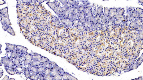 The Cholecystokinin (CCK) Monoclonal Antibody (Species: Rat) has been validated for the following applications: WB, IHC, ICC, IP. Host: Mouse. Species: Rat (Rattus norvegicus). Immunogen: Met1~Ser115. Applications: WB, IHC, ICC, IP. Accession Number: P01355. Gene ID: 25298. Target Synonyms: CCK-PZ Restrictions: For Research Use Only. Not for use in diagnostic procedures.