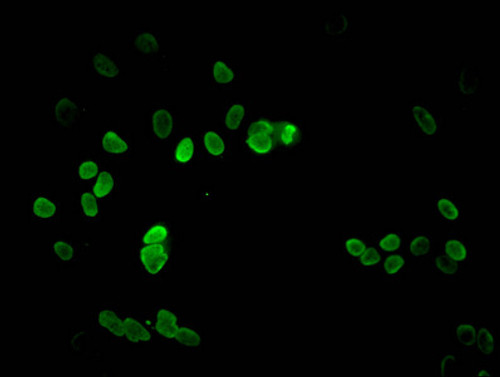 The Di-methyl-HIST1H3A (K9) Polyclonal Antibody (Species: Human) has been validated for the following applications: ELISA, WB, IF. Host: Rabbit. Species: Human (Homo sapiens). Immunogen: Peptide sequence around site of Di-methyl-Lys (9) derived from Human Histone H3.1. Applications: ELISA, WB, IF. Accession Number: P68431. Target Synonyms: H3 histone family member E pseuDog (Canis familiaris; Canine)ene; H3 histone family; member A; H3/A; H31_HUMAN; H3F3; H3FA; Hist1h3a; HIST1H3B; HIST1H3C; HIST1H3D; HIST1H3E; HIST1H3F; HIST1H3G; HIST1H3H; HIST1H3I; HIST1H3J; HIST3H3; histone 1; H3a; Histone cluster 1; H3a; Histone H3 3 pseuDog (Canis familiaris; Canine)ene; Histone H3.1; Histone H3/a; Histone H3/b; Histone H3/c; Histone H3/d; Histone H3/f; Histone H3/h; Histone H3/i; Histone H3/j; Histone H3/k; Histone H3/l Restrictions: For Research Use Only. Not for use in diagnostic procedures.