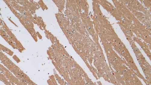 DAB staining on IHC-P; Sample: Human Cerebrum Tissue; Primary Ab: 10ug/ml Mouse Anti-Human NSE Antibody Second Ab: 2ug/mL HRP-Linked Caprine Anti-Mouse IgG Polyclonal Antibody