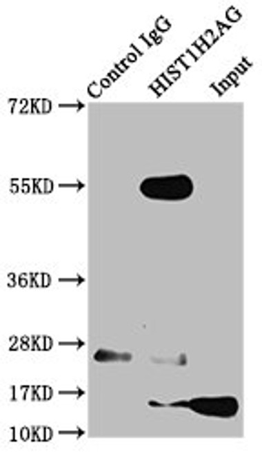 The HIST1H2AG (Ab-74) Polyclonal Antibody (Species: Human) has been validated for the following applications: ELISA, WB, IP. Host: Rabbit. Species: Human (Homo sapiens). Immunogen: Peptide sequence around site of Lys (74) derived from Human Histone H2A type 1. Applications: ELISA, WB, IP. Accession Number: P0C0S8. Target Synonyms: H2AC11; H2AFP; HIST1H2AG; H2AC13; H2AFC; HIST1H2AI; H2AC15; H2AFD; HIST1H2AK; H2AC16; H2AFI; HIST1H2AL; H2AC17; H2AFN; HIST1H2AMHistone H2A type 1; H2A.1; Histone H2A/ptl Restrictions: For Research Use Only. Not for use in diagnostic procedures.