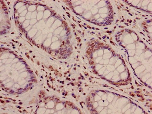 Immunohistochemistry of paraffin-embedded human colon cancer using CAC15216 at dilution of 1:100