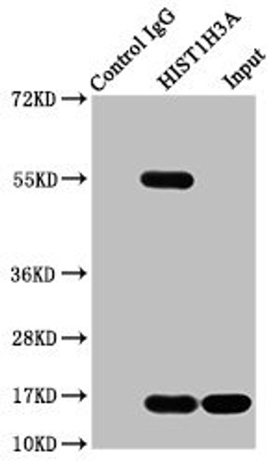 The HIST1H3A (Ab-128) Polyclonal Antibody (Species: Human) has been validated for the following applications: ELISA, WB, IHC, IP. Host: Rabbit. Species: Human (Homo sapiens). Immunogen: Peptide sequence around site of Arg (128) derived from Human Histone H3.1. Applications: ELISA, WB, IHC, IP. Accession Number: P68431. Target Synonyms: H3 histone family member E pseuDog (Canis familiaris; Canine)ene; H3 histone family; member A; H3/A; H31_HUMAN; H3F3; H3FA; Hist1h3a; HIST1H3B; HIST1H3C; HIST1H3D; HIST1H3E; HIST1H3F; HIST1H3G; HIST1H3H; HIST1H3I; HIST1H3J; HIST3H3; histone 1; H3a; Histone cluster 1; H3a; Histone H3 3 pseuDog (Canis familiaris; Canine)ene; Histone H3.1; Histone H3/a; Histone H3/b; Histone H3/c; Histone H3/d; Histone H3/f; Histone H3/h; Histone H3/i; Histone H3/j; Histone H3/k; Histone H3/l Restrictions: For Research Use Only. Not for use in diagnostic procedures.