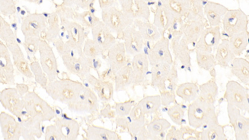 DAB staining on IHC-P; Sample: Human Cardiac Muscle Tissue; Primary Ab: 20ug/ml Mouse Anti-Human INHbB Antibody Second Ab: 2ug/mL HRP-Linked Caprine Anti-Mouse IgG Polyclonal Antibody