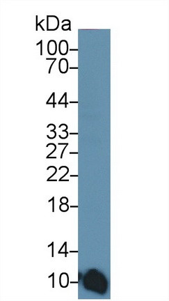 Western Blot; Sample: MCF7 cell lysate; Primary Ab: 3ug/ml Mouse Anti-Human S100A6 Antibody; Second Ab: 0.2ug/mL HRP-Linked Caprine Anti-Mouse IgG Polyclonal Antibody