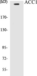 ACC1 Colorimetric Cell-Based ELISA Kit for detecting ACC1 in researchers plate their cell line of choice. Species Reactivity: Human (Homo sapiens), Mouse (Mus musculus), Rat (Rattus norvegicus). Detection Range: Qualitative. Sensitivity: At least 5000 cells/well. Format: 96-Well Plate. Assay Type: Cell-Based. Detection Method: Colorimetric. Assay Time: 4h, 30min. Accession Number: Q13085. Gene ID: 31. Target Synonyms: ACAC; ACACA; ACC-alpha; ACCA; Acetyl-CoA carboxylase 1. Restrictions: For Research Use Only. Not for use in diagnostic procedures.