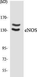 eNOS Colorimetric Cell-Based ELISA for detecting eNOS in researchers plate their cell line of choice. Species Reactivity: Human (Homo sapiens), Mouse (Mus musculus), Rat (Rattus norvegicus). Detection Range: Qualitative. Sensitivity: At least 5000 cells/well. Format: 96-Well Plate. Assay Type: Cell-Based. Detection Method: Colorimetric. Assay Time: 4h, 30min. Accession Number: P29474. Gene ID: 4846. Target Synonyms: cNOS; Constitutive NOS; EC-NOS; ECNOS; Endothelial NOS; Nitric-oxide synthase; endothelial; NOS; type III; NOS3; NOSIII. Restrictions: For Research Use Only. Not for use in diagnostic procedures.