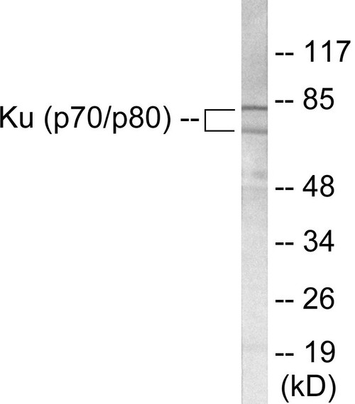Ku70/80 Colorimetric Cell-Based ELISA for detecting Ku70/80 in researchers plate their cell line of choice. Species Reactivity: Human (Homo sapiens). Detection Range: Qualitative. Sensitivity: At least 5000 cells/well. Format: 96-Well Plate. Assay Type: Cell-Based. Detection Method: Colorimetric. Assay Time: 4h, 30min. Accession Number: P13010. Gene ID: 7520. Target Synonyms: 86 kDa subunit of Ku antigen; ATP-dependent DNA helicase II; 80 kDa subunit; CTC box binding factor 85 kDa subunit; CTC85; CTCBF; DNA-repair protein XRCC5; G22P2; KU86; Lupus Ku autoantigen protein p86; Nuclear factor IV; Thyroid- lupus autoantigen; TLAA; XRCC5. Restrictions: For Research Use Only. Not for use in diagnostic procedures.