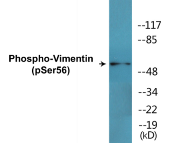 Phospho-Vimentin (Ser56) Colorimetric Cell-Based ELISA Kit for detecting Phospho-Vimentin (Ser56) in researchers plate their cell line of choice. Species Reactivity: Human (Homo sapiens). Detection Range: Qualitative. Sensitivity: At least 5000 cells/well. Format: 96-Well Plate. Assay Type: Cell-Based. Detection Method: Colorimetric. Assay Time: 4h, 30min. Accession Number: P08670. Gene ID: 7431. Target Synonyms: VIME; vimentin. Restrictions: For Research Use Only. Not for use in diagnostic procedures.