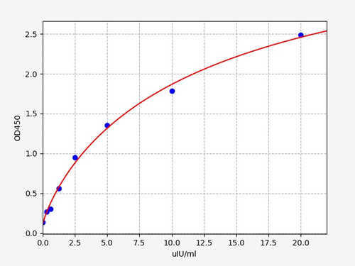 Human TSH (Thyroid Stimulating Hormone) ELISA Kit for detecting TSH in serum, plasma, cell culture supernatant, cell or tissue lysate, other biological fluids. Species Reactivity: Human (Homo sapiens). Detection Range: 0.0156-1uiu/ml. Sensitivity: 0.0094uiu/ml. Format: 96-Well Plate. Assay Type: Sandwich ELISA, Double Antibody. Assay Time: 3h, 30 min. Accession Number: P01222; P01215. Target Synonyms: TSH; Thyroid Stimulating Hormone. Restrictions: For Research Use Only. Not for use in diagnostic procedures.