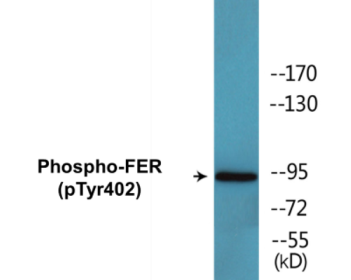 Phospho-FER (Tyr402) Colorimetric Cell-Based ELISA Kit for detecting Phospho-FER (Tyr402) in researchers plate their cell line of choice. Species Reactivity: Human (Homo sapiens), Mouse (Mus musculus). Detection Range: Qualitative. Sensitivity: At least 5000 cells/well. Format: 96-Well Plate. Assay Type: Cell-Based. Detection Method: Colorimetric. Assay Time: 4h, 30min. Accession Number: P16591. Gene ID: 2241. Target Synonyms: p94-FER; c-FER; Tyrosine kinase 3. Restrictions: For Research Use Only. Not for use in diagnostic procedures.