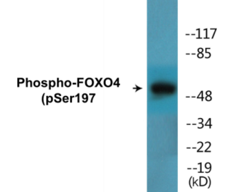 Phospho-FOXO4 (Ser197) Colorimetric Cell-Based ELISA Kit for detecting Phospho-FOXO4 (Ser197) in researchers plate their cell line of choice. Species Reactivity: Human (Homo sapiens), Mouse (Mus musculus). Detection Range: Qualitative. Sensitivity: At least 5000 cells/well. Format: 96-Well Plate. Assay Type: Cell-Based. Detection Method: Colorimetric. Assay Time: 4h, 30min. Accession Number: P98177. Gene ID: 4303. Target Synonyms: AFX; AFX1; Afxh; forkhead box protein O4; forkhead domain AFX1; MLLT7; myeloid/lymphoid or mixed-lineage leukemia (trithorax homolog; Drosophila) translocated to; 7 (AFX1). Restrictions: For Research Use Only. Not for use in diagnostic procedures.