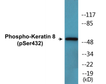 Phospho-Keratin 8 (Ser432) Colorimetric Cell-Based ELISA Kit for detecting Phospho-Keratin 8 (Ser432) in researchers plate their cell line of choice. Species Reactivity: Human (Homo sapiens), Mouse (Mus musculus), Rat (Rattus norvegicus). Detection Range: Qualitative. Sensitivity: At least 5000 cells/well. Format: 96-Well Plate. Assay Type: Cell-Based. Detection Method: Colorimetric. Assay Time: 4h, 30min. Accession Number: P05787. Gene ID: 3856. Target Synonyms: CK 8; CK8; CYK8; Cytokeratin endo A; K2C8; K8; KRT2-8; KRT8; Keratin; type II cytoskeletal 8; cytokeratin 8. Restrictions: For Research Use Only. Not for use in diagnostic procedures.