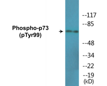 Phospho-p73 (Tyr99) Colorimetric Cell-Based ELISA Kit for detecting Phospho-p73 (Tyr99) in researchers plate their cell line of choice. Species Reactivity: Human (Homo sapiens), Mouse (Mus musculus). Detection Range: Qualitative. Sensitivity: At least 5000 cells/well. Format: 96-Well Plate. Assay Type: Cell-Based. Detection Method: Colorimetric. Assay Time: 4h, 30min. Accession Number: O15350. Gene ID: 7161. Target Synonyms: p53-like transcription factor; p53-related protein; P73 alpha protein; p73-alpha; TP73; TRP73; Tumor protein p73. Restrictions: For Research Use Only. Not for use in diagnostic procedures.