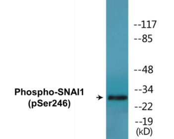 Phospho-SNAI1 (Ser246) Colorimetric Cell-Based ELISA Kit for detecting Phospho-SNAI1 (Ser246) in researchers plate their cell line of choice. Species Reactivity: Human (Homo sapiens), Mouse (Mus musculus). Detection Range: Qualitative. Sensitivity: At least 5000 cells/well. Format: 96-Well Plate. Assay Type: Cell-Based. Detection Method: Colorimetric. Assay Time: 4h, 30min. Accession Number: O95863. Gene ID: 6615. Target Synonyms: SNAH; SNAI; Sna; Snail; zinc finger protein SNAI1. Restrictions: For Research Use Only. Not for use in diagnostic procedures.