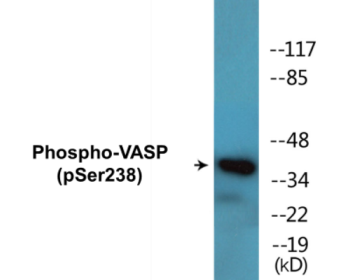 Phospho-VASP (Ser238) Colorimetric Cell-Based ELISA Kit for detecting Phospho-VASP (Ser238) in researchers plate their cell line of choice. Species Reactivity: Human (Homo sapiens), Mouse (Mus musculus), Rat (Rattus norvegicus). Detection Range: Qualitative. Sensitivity: At least 5000 cells/well. Format: 96-Well Plate. Assay Type: Cell-Based. Detection Method: Colorimetric. Assay Time: 4h, 30min. Accession Number: P50552. Gene ID: 7408. Target Synonyms: vasodilator-stimulated phosphoprotein. Restrictions: For Research Use Only. Not for use in diagnostic procedures.
