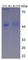 OVA Conjugated Human Amyloid Beta Peptide 1-40 (Ab1-40) is a purified Conjugated Small Molecules. Purity: >90% by SDS-PAGE. Endotoxin Level: <1.0EU per 1ug, by the LAL method. Species: Human (Homo sapiens). Target Name: Amyloid Beta Peptide 1-40 (Ab1-40). Accession Number: P05067. Gene ID: 351. Tag Info: N-terminal His Tag. Buffer: PBS, pH7.4, containing 0.01% SKL, 5% Trehalose. Storage: -20°C. Avoid repeated freeze/thaw cycles. Restrictions: For Research Use Only. Not for use in diagnostic procedures.