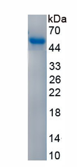 Prokaryotic Chicken Alpha-1-Antitrypsin is a purified Prokaryotic Protein. Purity: >90% by SDS-PAGE. Host: E. coli. Endotoxin Level: <1.0EU per 1ug, by the LAL method. Species: Chicken (Gallus). Target Name: Alpha-1-Antitrypsin. Accession Number: A0A1L1RRQ8. Expression Region: Phe56~Pro398. Tag Info: Two N-terminal Tags, His-tag and SUMO-tag. Theoretical MW: 55kda. Buffer: PBS, pH7.4, containing 0.01% SKL, 1mM DTT, 5% Trehalose and Proclin300.. Target Synonyms: SERPINA1; SPAAT; A1-AT; PI; Serpin Peptidase Inhibitor,Clade A(Alpha-1 Antiproteinase/AntiTrypsin)Member 1; Alpha-1 protease inhibitor; Short peptide from AAT; Serpin A1 Restrictions: For Research Use Only. Not for use in diagnostic procedures.