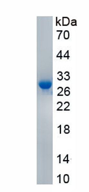 Prokaryotic Pig Granzyme B is a purified Prokaryotic Protein. Purity: >90% by SDS-PAGE. Host: E. coli. Endotoxin Level: <1.0EU per 1ug, by the LAL method. Species: Pig (Sus scrofa; Porcine). Target Name: Granzyme B. Accession Number: F1MTF4. Gene ID: 508646. Expression Region: Gly19~Leu246. Tag Info: N-terminal His Tag. Theoretical MW: 29kda. Buffer: PBS, pH7.4, containing 0.01% SKL, 1mM DTT, 5% Trehalose and Proclin300.. Target Synonyms: GZM-B; HLP; CTLA1; CCPI; CGL1; CSP-B; CSPB; CTSGL1; SECT; Granzyme 2; Cytotoxic T-Lymphocyte-Associated Serine Esterase 1; Fragmentin 2; Cytotoxic Serine Protease B Restrictions: For Research Use Only. Not for use in diagnostic procedures.