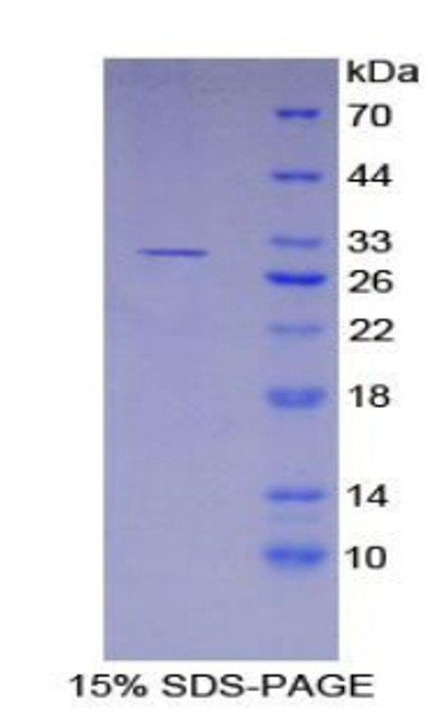 Recombinant Human Kallikrein 11 (KLK11) is a purified Prokaryotic Protein. Purity: >97% by SDS-PAGE. Host: E. coli. Endotoxin Level: <1.0EU per 1ug, by the LAL method. Species: Human (Homo sapiens). Target Name: Kallikrein 11 (KLK11). Target Synonyms: TLSP; hK11; Hippostatin; Kallikrein-Related Peptidase 11; Serine protease 20; Trypsin-like protease. Accession Number: Q9UBX7. Gene ID: 11012. Expression Region: Ile39~Asn282. Tag Info: N-terminal His Tag. Theoretical MW: 30.5kDa. Buffer: PBS, pH7.4, containing 0.01% SKL, 5% Trehalose. Storage: -20°C. Avoid repeated freeze/thaw cycles. Restrictions: For Research Use Only. Not for use in diagnostic procedures.