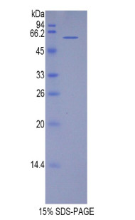 Recombinant Human Telomeric Repeat Binding Factor 1 (TERF1) is a purified Prokaryotic Protein. Purity: >97% by SDS-PAGE. Host: E. coli. Endotoxin Level: <1.0EU per 1ug, by the LAL method. Species: Human (Homo sapiens). Target Name: Telomeric Repeat Binding Factor 1 (TERF1). Target Synonyms: TRF; PIN2; TRBF1; TRF1; hTRF1-AS; t-TRF1; NIMA-interacting protein 2; TTAGGG repeat-binding factor 1; Telomeric protein Pin2/TRF1. Accession Number: P54274. Gene ID: 7013. Expression Region: Ile148~Lys428. Tag Info: N-terminal His and GST Tag. Theoretical MW: 60kDa. Buffer: PBS, pH7.4, containing 0.01% SKL, 5% Trehalose. Storage: -20°C. Avoid repeated freeze/thaw cycles. Restrictions: For Research Use Only. Not for use in diagnostic procedures.
