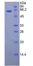 Recombinant Mouse Telomerase Reverse Transcriptase (TERT) is a purified Prokaryotic Protein. Purity: >95% by SDS-PAGE. Host: E. coli. Endotoxin Level: <1.0EU per 1ug, by the LAL method. Species: Mouse (Mus musculus). Target Name: Telomerase Reverse Transcriptase (TERT). Target Synonyms: EST2; TCS1; TP2; TRT; hEST2; Telomerase catalytic subunit; Telomerase-associated protein 2. Accession Number: O70372. Gene ID: 21752. Expression Region: Gln642~Lys974. Tag Info: N-terminal His and GST Tag. Theoretical MW: 60kDa. Buffer: PBS, pH7.4, containing 0.01% SKL, 5% Trehalose. Storage: -20°C. Avoid repeated freeze/thaw cycles. Restrictions: For Research Use Only. Not for use in diagnostic procedures.