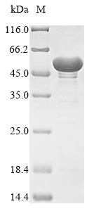 Recombinant Neosartorya fumigata Enolase (enoA) is a purified Recombinant Protein. Purity: >85% as determined by SDS-PAGE. Host: E. coli. Endotoxin Level: Not Tested. Species: Neosartorya fumigata (strain ATCC MYA-4609 / Af293 / CBS 101355 / FGSC A1100) (Aspergillus fumigatus). Target Name: enoA. Target Synonyms: 2-phospho-D-glycerate hydro-lyase2-phosphoglycerate dehydrataseAllergen: Asp f 22. Accession Number: Q96X30. Expression Region: 2~438aa. Tag Info: N-Terminal 6Xhis-Tagged. Theoretical MW: 51.2kDa. Buffer: If the delivery form is liquid, the default storage buffer is Tris/PBS-based buffer, 5%-50% glycerol. If the delivery form is lyophilized powder, the buffer before lyophilization is Tris/PBS-based buffer, 6% Trehalose, pH 8.0. Storage: -20°C. Avoid repeated freeze/thaw cycles. Restrictions: For Research Use Only. Not for use in diagnostic procedures.
