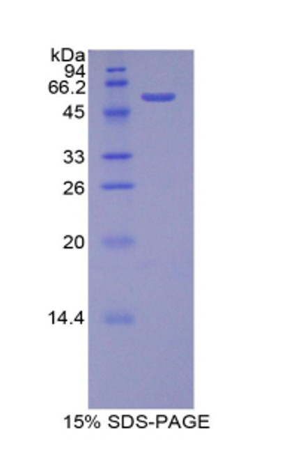 Recombinant Rat Beta Secretase 2 (BACE2) is a purified Prokaryotic Protein. Purity: >95% by SDS-PAGE. Host: E. coli. Endotoxin Level: <1.0EU per 1ug, by the LAL method. Species: Rat (Rattus norvegicus). Target Name: Beta Secretase 2 (BACE2). Target Synonyms: AEPLC; ALP56; ASP1; ASP21; BAE2; CDA13; CEAP1; DRAP; Beta-Site APP Cleaving Enzyme 2; Aspartic-like protease 56 kDa; Aspartyl protease 1; Down region aspartic protease; Memapsin-1. Accession Number: Q6IE75. Gene ID: 288227. Expression Region: Gly242~Val502. Tag Info: N-terminal His and GST Tag. Theoretical MW: 59kDa. Buffer: PBS, pH7.4, containing 0.01% SKL, 5% Trehalose. Storage: -20°C. Avoid repeated freeze/thaw cycles. Restrictions: For Research Use Only. Not for use in diagnostic procedures.