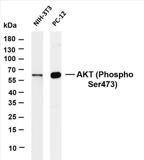 The AKT (Phospho Ser473) Recombinant Monoclonal Antibody (Species: Rabbit) has been validated for the following applications: WB, IHC, IF, IP, ELISA. Host: Rabbit. Species: Rabbit. Applications: WB, IHC, IF, IP, ELISA. Accession Number: P31749; P31751; Q9Y243. Gene ID: 7431. Target Synonyms: AKT1; PKB; RAC; RAC-alpha serine/threonine-protein kinase; Protein kinase B; PKB; Protein kinase B alpha; PKB alpha; Proto-oncogene c-Akt; RAC-PK-alpha; AKT2; RAC-beta serine/threonine-protein kinase; Protein kinase Akt-2; Protein kinase B. Restrictions: For Research Use Only. Not for use in diagnostic procedures.