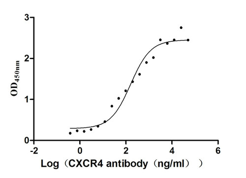 The Cxcr4 Recombinant Antibody (Species: Human) has been validated for the following applications: ELISA. Host: HEK293F Cell. Species: Human (Homo sapiens). Immunogen: Recombinant Human Cxcr4 Protein. Applications: ELISA. Accession Number: P61073. Target Synonyms: CXCR4; C-X-C chemokine receptor type 4; CXC-R4; CXCR-4; FB22; Fusin; HM89; LCR1; Leukocyte-derived seven transmembrane domain receptor; LESTR; Lipopolysaccharide-associated protein 3; LAP-3; LPS-associated protein 3; NPYRL; Stromal cell-derived factor 1 receptor; SDF-1 receptor; CD antigen CD184 Restrictions: For Research Use Only. Not for use in diagnostic procedures.